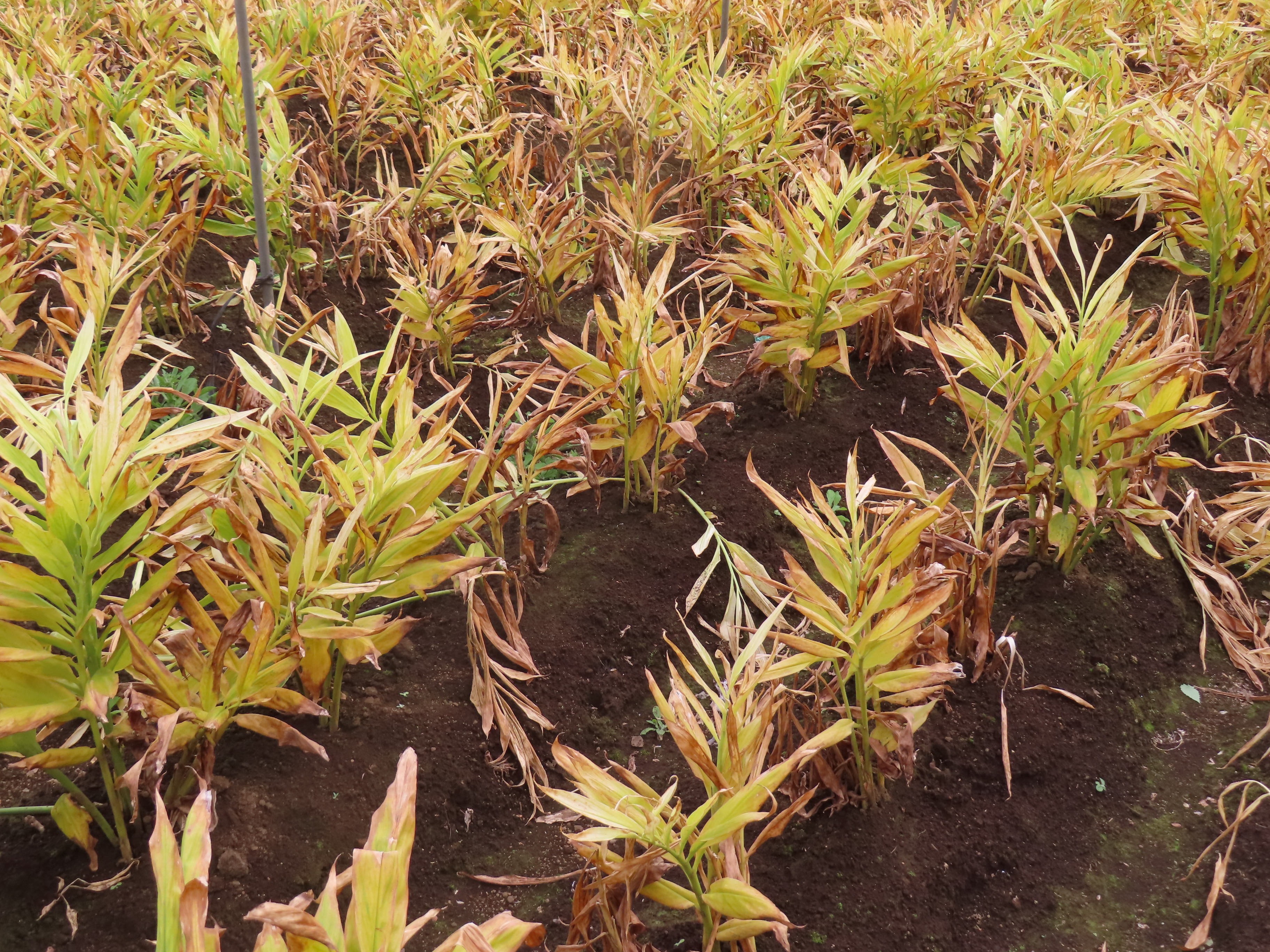 一面、生育にムラがあるのが分かり、ミョウガの子の出も
