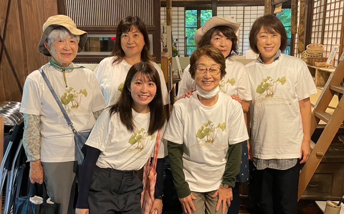 わさび田のボランティアが、石さんの作品でTシャツ作ると云う