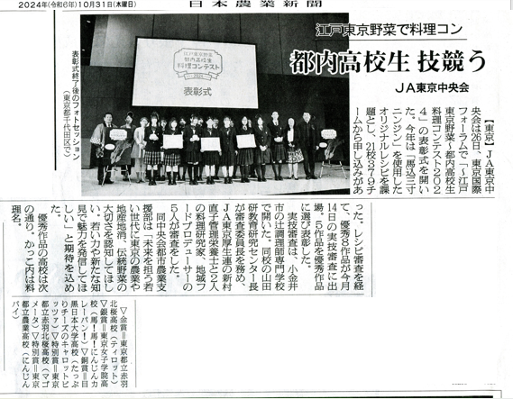 特別賞・都立赤羽北桜高等学校、都立農業高等学校の5校が