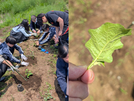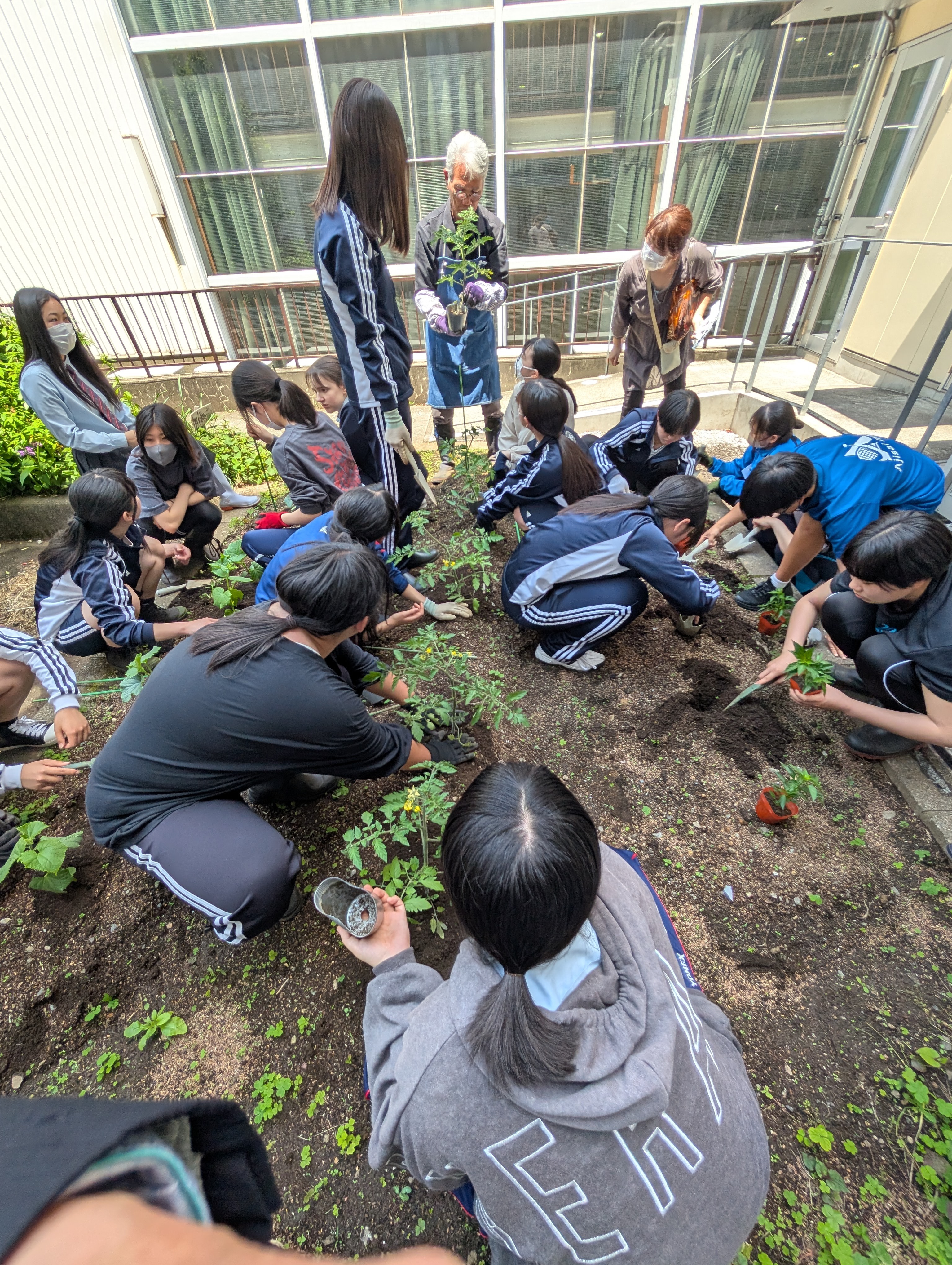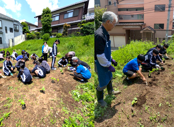 農園での定植が終わると、校内に戻り調理室の裏のスペースに、