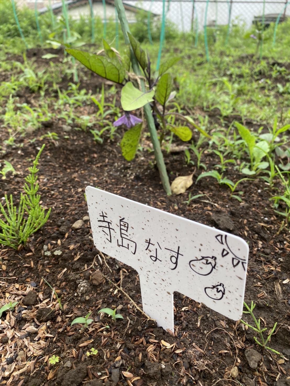 伸びている苗がいくつもあり、寺島ナスに養分が行かないからと