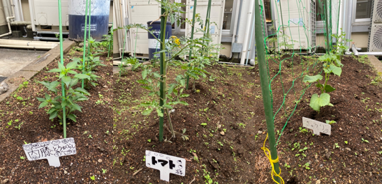 (内藤トウガラシ)と、トマトとキュウリが定植されたが、夏休み前に
