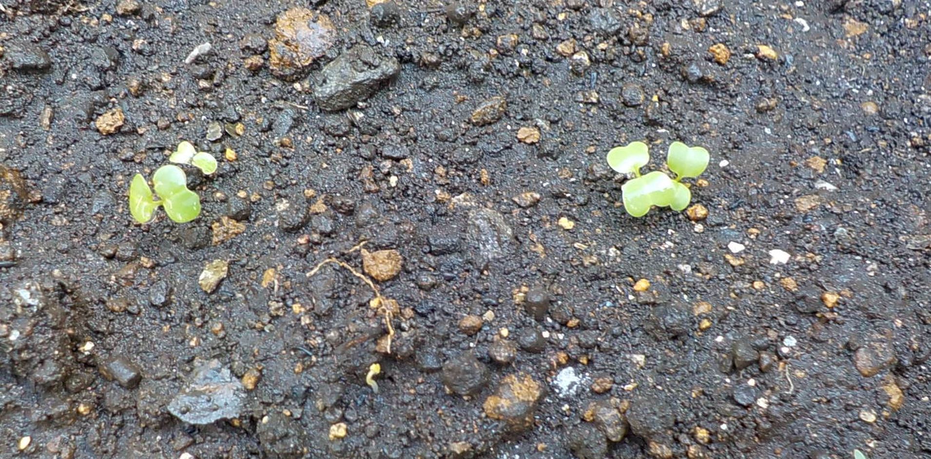静かに柔らかく散水するよう。ボタボタと散水すると播種した種が