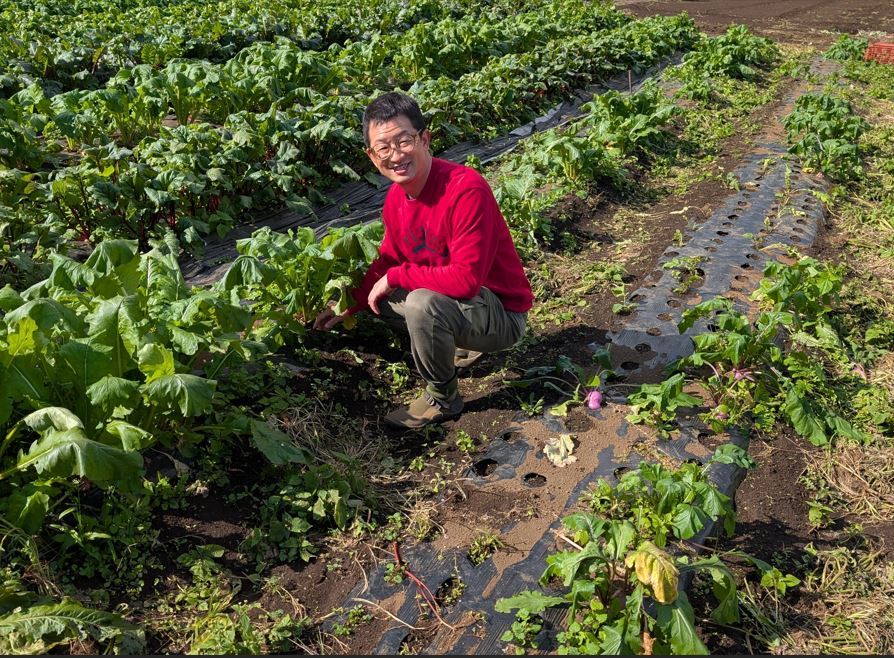江戸城濠大根を、大泉の村田農園で栽培している渡邊和嘉さんに、