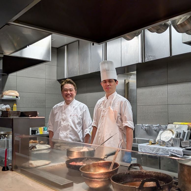 谷口シェフ(左)、前城スーシェフ(右)が、迎えてくれた。