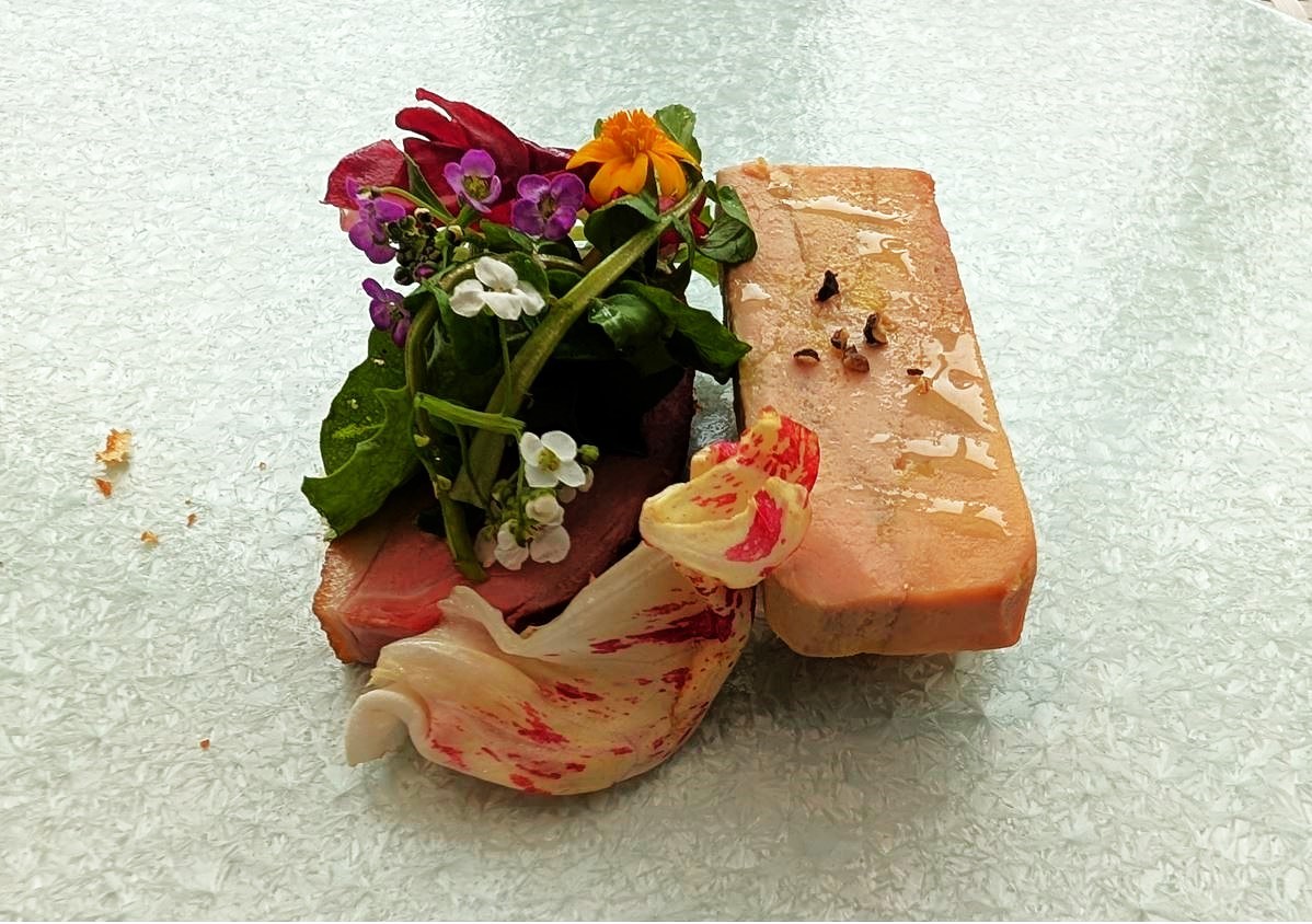 近江鴨の軽い燻製と自家製ブリオッシュ 彩り野菜のサラダ仕立て