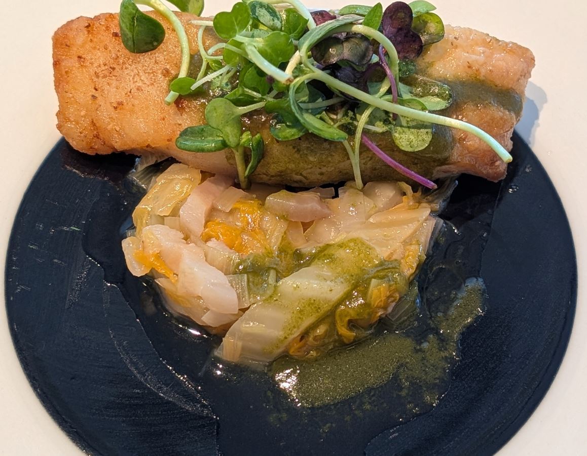 平目の下には、ポワロ一葱とオレンジ白菜