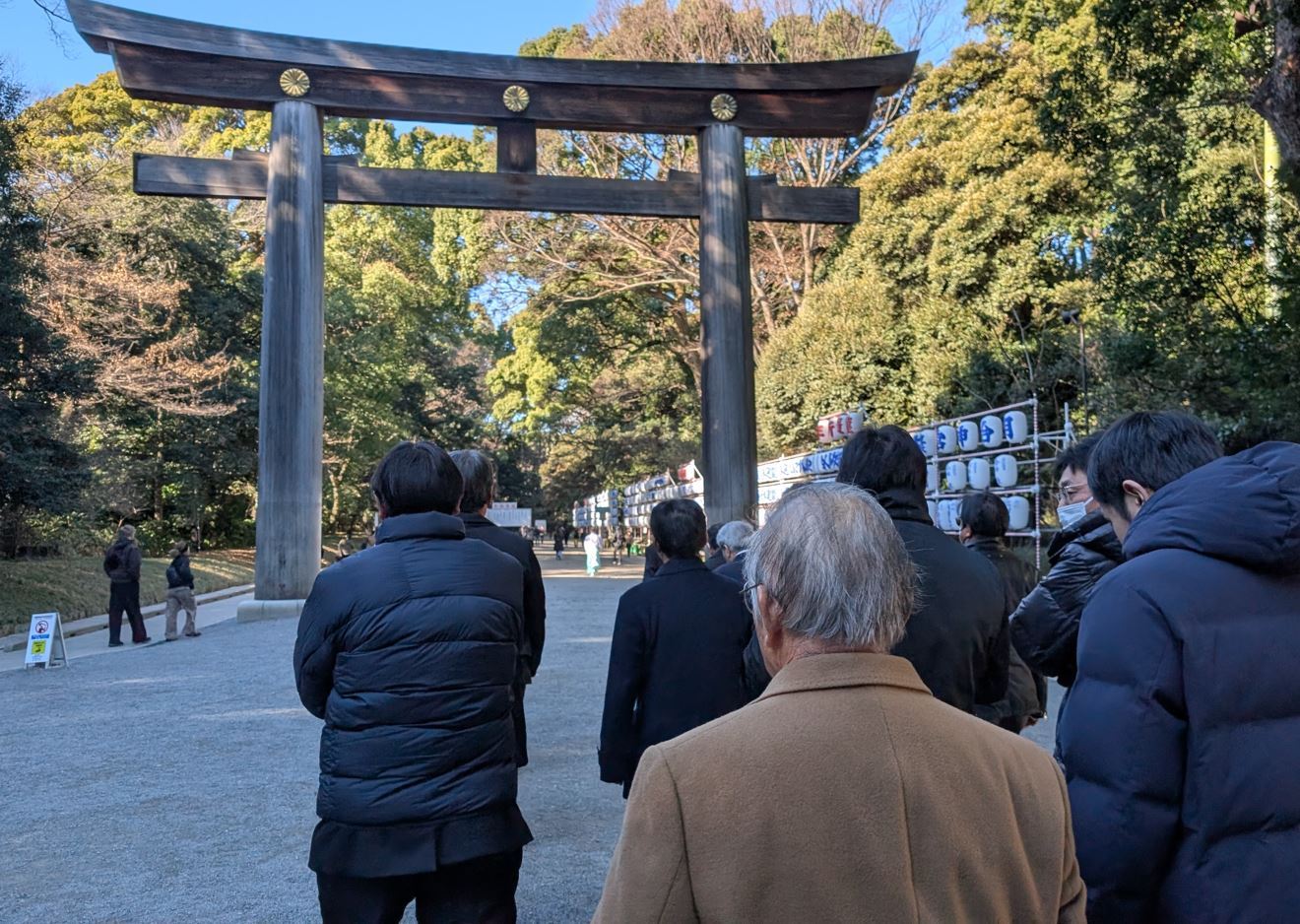 参加された80名が行列を作って、玉砂利を踏んで第二鳥居をくぐる。
