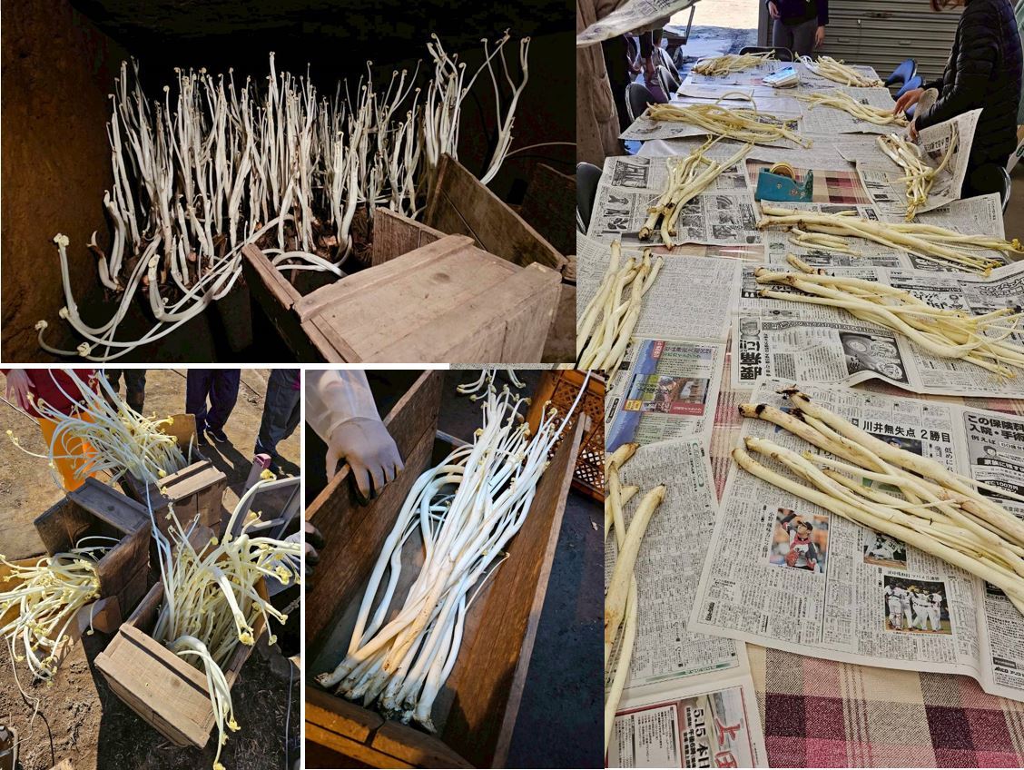 収穫した「うど」は、木箱に入れて穴蔵から引き揚げる。