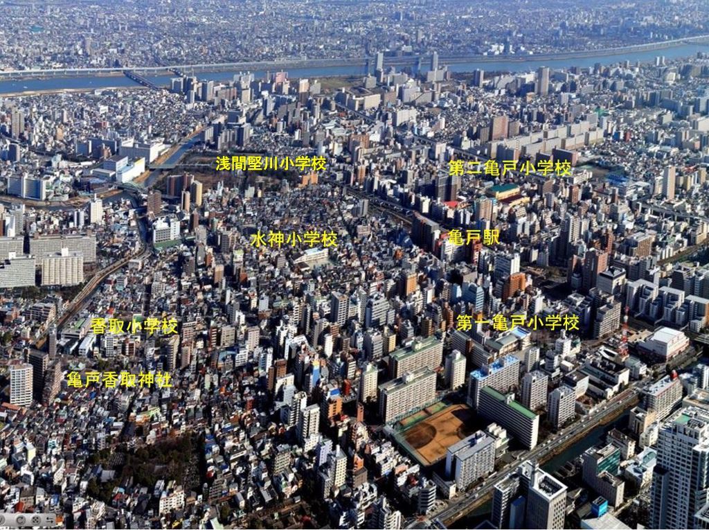 亀戸地区の小学校は、第一亀戸小学校、第二亀戸小学校、香取小学校、